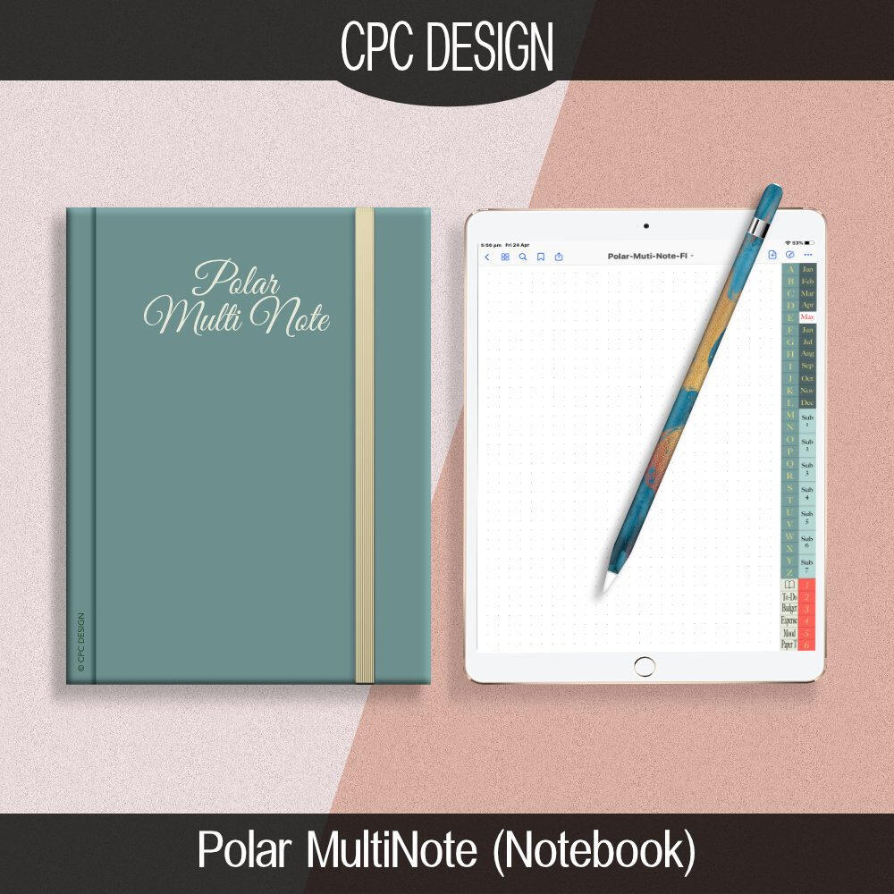DESCRIPTION✻ COMES WITH FREE STICKER BUNDLE ✻✻ You will need an app such as iZip or Documents 5 to unzip the sticker file,or if you have the latest iPad OS then you can unzip it in the files app.✻ THIS NOTE BOOK IS BLANK AND FOR USE IN PORTRAIT MODEThis Notebook is totally blank and comes with a sticker bundle to get you started. The Polar MultiNote Notebook has an A to Z, Notes, Monthly, Subject,To- Do, Budget, Expense, Mood, and Paper template tabs all hyperlinked, plus there are six numbered tabs to do as you wish. Each tab contains pages that can be duplicated as many times as you need. The pages are a Dot Grid layout for the most part. This little clean notebook is excellent for taking notes in school, college, and university, it can be used as a regular planner using the monthly tabs and can be used anywhere you take your iPad and need to take notes, or organise your day.Whats Included:✻ 1 Polar MultiNote Notebook PDF file✻ 1 Free PNG Sticker Bundle in Zip File✻ 2 Free Sticker Bundle GoodNotes in Zip File✻ The notebook will be downloaded in pdf format.!GoodNotes App not included. (Can buy on Apple AppStore)This can also be used with any app that allows PDF annotations.