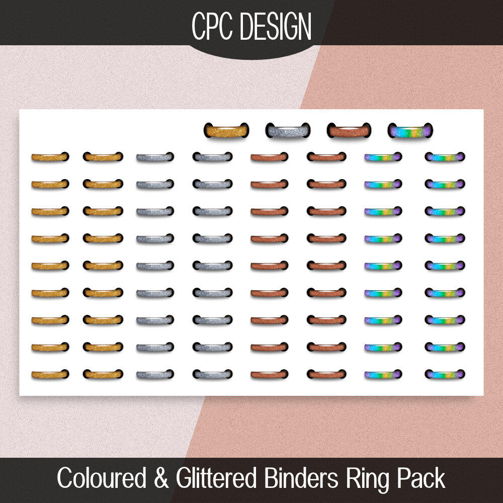 Coloured & Glittered Binders Ring Pack for GoodNotes: Transparent png’s. (Commercial use allowed) £1.99
