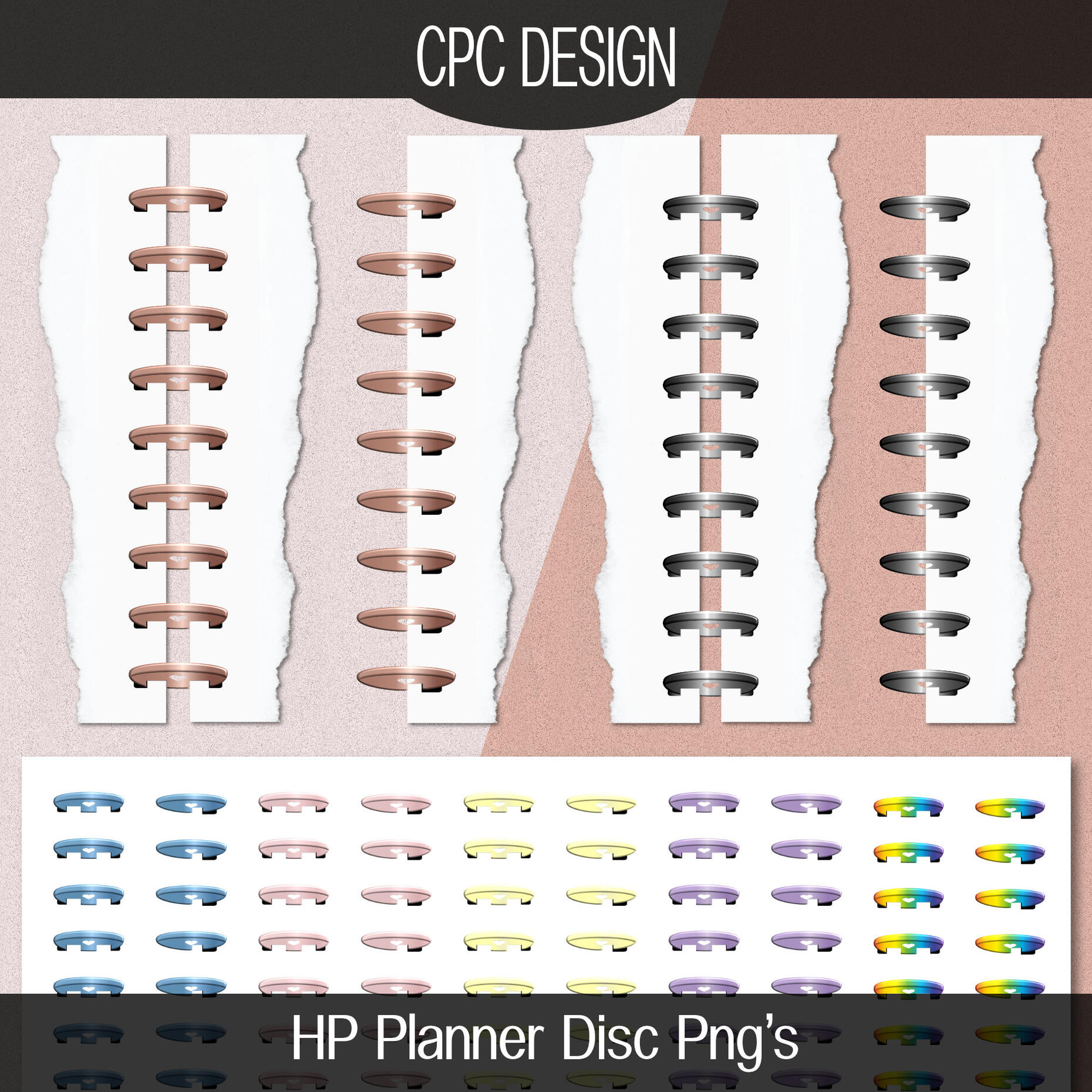 Coloured HP Planner Binder Disc Pack for GoodNotes: Transparent png’s. £1.99